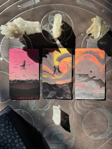 I hope the artwork speaks to you, and transports you to a place of healing and adventure. Sometimes all we need is to step back from our lives and see ourselves through a story. Through the soft grounded energy of the Pentacles. The cutting clarity of the Swords. The burning brightness of the Wands. The dreamy sweetness of the Cups. And the bold intensity of the Major Arcana. May you see yourself in the story of these cards, and carry their lessons back to you.
